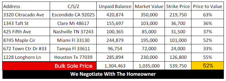 Below are examples of two (2) Exhibits of Mortgage Portfolios that we acquire often that provides and assist passive income/profit cash flow to our Investors (Bulk Mortgage Portfolio Acquisitions):
