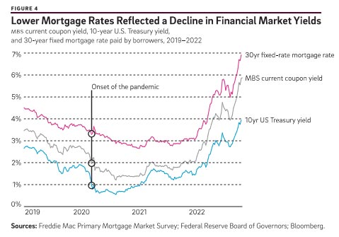 We also highlight some important limits of the boom. First, the mortgage industry faced significant capacity constraints as originators scrambled to expand lending in a challenging operating environment. As a result, only part of the decline in financial market yields was passed along to mortgage borrowers in the form of lower interest rates. (Yield in this context refers to the rate of return over the life of a fixed-income security such as a Treasury bond or mortgage-backed security.) In other words, although fixed mortgage rates fell to record lows below 3 percent in 2020 and 2021, rates could have been even lower if the credit supply